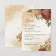 Beautiful earth tone fall wedding enclosure card featuring terracotta and gold beige flowers with green leaves . The gold glitter details are simulated.