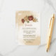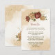 Beautiful earth tone fall wedding enclosure card featuring terracotta and gold beige flowers with green leaves . The gold glitter details are simulated.