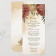 Beautiful earth tone fall wedding menu card featuring terracotta and gold beige flowers with green leaves . The gold glitter details are simulated.