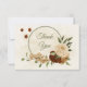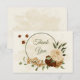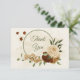 Beautiful earth tone fall wedding thank you card featuring terracotta, beige and cream flowers with green leaves .