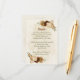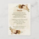 Beautiful earth tone fall wedding reception details enclosure card featuring terracotta, beige and cream flowers with green leaves .