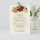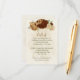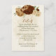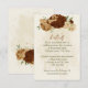 Beautiful earth tone fall wedding reception details enclosure card featuring terracotta, beige and cream flowers with green leaves .