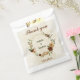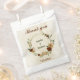 Beautiful earth tone fall wedding favour bag featuring terracotta, beige and cream flowers with green leaves .