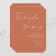 A beautiful design showcasing elegant script calligraphy typography on a terracotta burnt orange background . Perfect for anyone who loves modern minimalist designs. A stylish and trendy wedding invitation design with classic elements. Matching wedding stationery items and other wedding invite formats are also available.