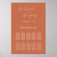 A beautiful design showcasing elegant script calligraphy typography on a terracotta burnt orange background . Perfect for anyone who loves modern minimalist designs. A stylish and trendy wedding seating chart design with classic elements. Matching wedding invitations and other stationery items are also available.