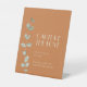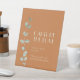 This Terracotta Eucalyptus Deco wedding capture the love pedestal sign provides a minimalist boho, and rustic country, western, or desert theme. The simple sage green eucalyptus succulent foliage compliments the terracotta autumn background, while the art deco type combined with the botanical greenery and burnt orange backdrop creates a versatility to combine with other coloured products from this collection. These colour combinations are sure to wow the guests attending your marriage celebration.