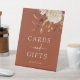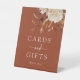 Terracotta Fall Cards Sign. Elegant and inviting, this Cards and Gifts tabletop sign features flowing script and a copper-toned background accented by watercolor artwork of autumn leaves in terracotta and burnt orange, plus cream and beige florals. A beautiful way to direct guests, it brings a cohesive look to your gift table—personalise it to match your wedding day vision.