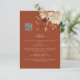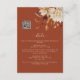 Terracotta Fall Details Enclosure Card. Ensure your guests have all the essential information at their fingertips with this vertical details enclosure card, featuring a convenient QR code. The design showcases breathtaking hand-painted watercolor artwork of burnt orange and terracotta leaves, creamy beige dahlias, and vibrant copper and rust-coloured roses, all set against a warm copper background. Blend elegance with convenience—customise your details card now.