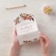 This charming all-in-one wedding invitation features a beautiful autumnal design, adorned with a lush array of rust-coloured and muted floral arrangements. Rich terracotta and warm earth tones dominate the watercolor illustrations of dahlias, dried leaves, and various botanicals, creating a cosy and inviting atmosphere. The design is elegantly complemented by modern script and elegant typography for all the wedding details, making it perfect for a romantic fall celebration.