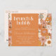 This bridal shower invitation postcard features warm terracotta and burnt orange florals with a retro, earthy feel. Designed as a single postcard, it’s a budget-friendly option that skips envelopes while still feeling intentional and stylish. Perfect for brunch and bubbly celebrations, fall showers, or boho-leaning bridal events. Easily personalize with names, date, and event details.