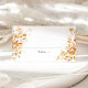 Warm terracotta florals meet refined typography in this elegant wedding place card design.