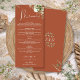 This elegant terracotta floral botanical greenery leaves wedding menu can be personalised with your information in chic typography with your monogram initials on the reverse. Designed by Thisisnotme©