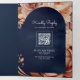 Terracotta Floral Mason Jar Navy QR Code Wedding Tri-Fold Invitation