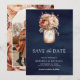 Terracotta Floral Navy Blue Photo Wedding Save The Date