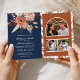 Terracotta Floral Navy Blue QR Code Wedding Invitation