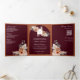 Terracotta Floral Pampas Burgundy QR Code Wedding Tri-Fold Invitation