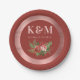 Terracotta Floral Pine Bough Wedding Monogram Paper Plate