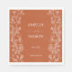 Terracotta Floral Rustic Paper Wedding Napkins. Celebrate your special day with these beautiful boho floral wedding napkins. Featuring an elegant delicate hand drawn white floral frame design against a warm terracotta background, these napkins add a touch of modern rustic charm to any reception table. The delicate floral vine gracefully frames your names and wedding date, making them a unique keepsake for your guests. Perfect for rustic, bohemian, or garden-themed weddings, these napkins are designed to impress and complement your celebration's burnt orange or terracotta aesthetic.