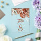 Elegant terracotta theme wedding table number featuring beautiful earthy flowers.