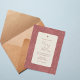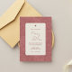 Warm, romantic, and effortlessly stylish, this terracotta wedding invitation blends modern simplicity with artistic floral detail. A soft rounded panel sits against a richly patterned botanical background, creating beautiful contrast and depth. The muted clay and rose tones bring warmth and sophistication, perfect for a heartfelt celebration.