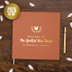 Terracotta and gold guestbook for your small business farmhouse rental with the name in gold foil beneath a hen in a greenery wreath. Farmhouse bed and breakfast guestbook in terracotta with custom gold foil text and a hen and greenery icon. Terracotta and gold foil guestbook for your rental home, rental farmhouse or rustic bed and breakfast with custom gold foil text and a hen inside a wreath.