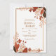 Set a warm and inviting tone for your special day with this elegant autumnal botanical arrangement. The composition features stylized leaf clusters in earthy terracotta and burnt orange tones, complemented by deep chocolate brown foliage detailed with delicate gold line patterns. A minimal gold rectangular frame provides a crisp, sophisticated focal point for your ceremony details, creating a modern organic look against the clean white backdrop. This design serves as an exquisite foundation for a wedding invitation, making it the premier choice for a formal fall ceremony, a rustic garden celebration, or a sophisticated thanksgiving-themed wedding. These motifs ensure your stationery stands out with an artistic, high-end feel that captures the essence of refined nature from the moment your guest opens the envelope.