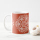 This white mandala sits on a dark orange background. The colours are creative and warm. Part of the Rosenn Mandala Collection.