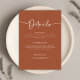 This luxurious, high-end Terracotta Modern Minimal Calligraphy Wedding Enclosure Card is the epitome of minimalist design, combining the timeless charm of classic calligraphy script typography with the warm, earthy tones of terracotta. Each card exudes a sense of formality, delicately balancing the clean, minimal aesthetic with the artistic flair of refined wedding details, making each recipient feel specially invited to share in your joyous occasion. The sophisticated colour palette adds a unique, contemporary touch, setting the tone for a truly unforgettable event. Perfect for a fall wedding, summer wedding, spring wedding, boho wedding, or just any modern wedding. Customise the text size, font styles, colours, and placement to your liking using the design tool. For matching items, visit the Modern Terracotta Wedding invitations collection.