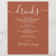 These elegant script terracotta minimalist drinks menus are perfect for any celebration. Designed by Thisisnotme©