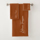 A beautiful set of Terracotta burnt orange bathroom towels that can be customised to your name. The signature script font is classy and stylish.