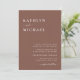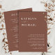 Terracotta Modern Typography All In One Minimalist Wedding Invitation Card. Celebrate your special day with this elegant and beautiful wedding invitation card to beautify your special occasion. All the texts are pre-arranged for you to personalise easily and quickly with your own details. If you need further customisation or matching items, please email alldaybreakfastzazzle@gmail.com – we would love to help.