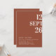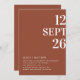 Modern typography wedding invitation and details with photo + QR Code on back side in shades of terracotta, brown, burnt orange colours. Suitable for fall / autumn wedding. Please contact me if you need additional items.
