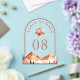 Elegant forest theme wedding table number featuring beautiful mountains and modern typography.