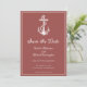 Elegant and simple Wedding save the date invite featuring a nautical anchor and simple text design. This design is a unique choice for announcing a modern wedding. Easy to customise with your wedding details. Click "Customise It" to find more personalisation options.