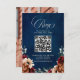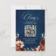 Elegant Navy blue, Terracotta , Orange earthy floral theme QR code photo RSVP card featuring elegant bouquet of Navy blue, Terracotta colour roses peonies and green eucalyptus leaves. Please contact me for any help in customisation or if you need any other product with this design.