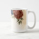 Beautiful earth tone coffee mug featuring terracotta and navy blue flowers with green leaves .