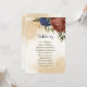 Beautiful earth tone fall seating chart card featuring terracotta and navy blue flowers with green leaves. The gold glitter details are simulated.