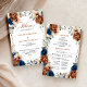 Elegant Navy blue, Terracotta , Orange earthy floral theme wedding program featuring elegant bouquet of Navy blue, Terracotta colour roses peonies and green eucalyptus leaves. Please contact me for any help in customisation or if you need any other product with this design.