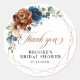 Elegant Navy blue, Terracotta , Orange earthy floral theme bridal shower thank you sticker featuring elegant bouquet of Navy blue, Terracotta colour roses peonies and green eucalyptus leaves. Please contact me for any help in customisation or if you need any other product with this design.