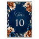 Elegant Navy blue, Terracotta , Orange earthy floral theme wedding table number card featuring elegant bouquet of Navy blue, Terracotta colour roses peonies and green eucalyptus leaves. Please contact me for any help in customisation or if you need any other product with this design.