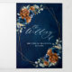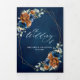 Elegant Navy blue, Terracotta , Orange earthy floral theme wedding Invitation featuring elegant bouquet of Navy blue, Terracotta colour roses peonies and green eucalyptus leaves. Please contact me for any help in customisation or if you need any other product with this design.