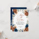 Elegant Navy blue, Terracotta , Orange earthy floral theme wedding save the date card featuring elegant bouquet of Navy blue, Terracotta colour roses peonies  and green eucalyptus leaves. Please contact me for any help in customisation or if you need any other product with this design.