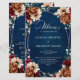 Elegant Navy blue, Terracotta , Orange earthy floral theme wedding program featuring elegant bouquet of Navy blue, Terracotta colour roses peonies and green eucalyptus leaves. Please contact me for any help in customisation or if you need any other product with this design.