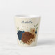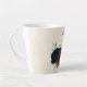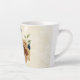 Beautiful earth tone fall latte mug featuring terracotta, beige and navy blue flowers with green leaves .