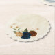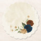 Beautiful earth tone fall paper coaster featuring terracotta, beige and navy blue flowers with green leaves .