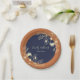 Add rustic elegance to your reception with these customisable wedding paper plates featuring a navy blue centre, terracotta border, and romantic floral accents in soft gold. Personalised with your names and wedding date, this design is perfect for boho, western, or autumn weddings. Ideal for outdoor celebrations, rehearsal dinners, or dessert tables, these stylish plates blend charm with convenience for your special day.
