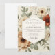 Embrace a warm and earthy elegance with this stunning botanical design. A gentle painterly arrangement features flowers in delicate cream, soft peach, and rich terracotta hues. These blossoms are beautifully complemented by dusty sage green foliage, creating a timeless and artistic atmosphere for your special day.