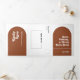 This is an all-in-one Tri-Fold Wedding Invitation that features an elegant and groovy modern minimalist boho design with a retro script font in an arch shape on a terracotta background along with a photo and QR Code. The simplicity of this design adds a touch of elegance to your wedding. It works well with many wedding themes and definitely a great addition to your wedding. Just customise the names and wording in a few easy steps in the text fields and personalise the all-in-one tri-fold invitation card with your photo of the happy couple and replace the QR Codes with yours to give your invitation a nice personal touch. This invitation will save you money to send everything at once. It has a RSVP postcard that your guest can just send it back. Just simply fold each invitation card into the outlined shape -- seal and send to your guests. No envelope is needed for shipping -- just postage.