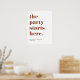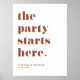 Welcome your wedding guests with this romantic wedding welcome sign. This customisable wedding welcome sign features a dainty script with classic typography. This terracotta THE PARTY STARTS HERE sign is perfect for any wedding theme.