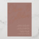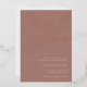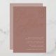 A beautiful typography based wedding invitation featuring your names in oversized rose gold foil script lettering at the top. Personalise with your wedding details in classic serif lettering aligned at the lower right. Our Terracotta colorway is an elegant mix of earthy neutrals, featuring warm white rosy taupe lettering on a terracotta clay background.